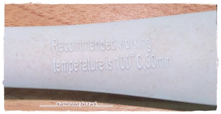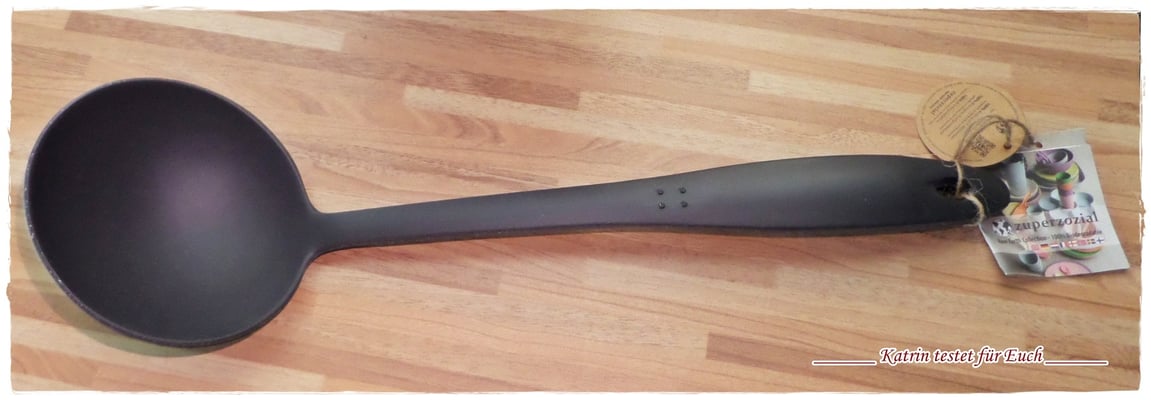 Die beiden Zuperzozial Küchenhelfer sind ebenfalls aus nachhaltigem Plastik (ohne BPA), sehr stabil und ich nehme sie super gern. Sie halten eine Temperatur von 100°C mindestens 30 min. aus, länger würde man sie auch nicht im Herd benutzen. Ganz besonders gefällt mir auch der lange und gut geformte Griff.