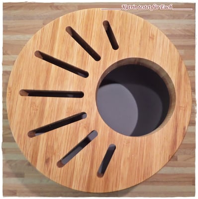 Knives on the Block - Runder Messer - und Küchenhelferblock aus Bambus und Mais von Zuperzozial. Deckel aus Bambusholz. 100% plastikfrei und biologisch abbaubar. Lieferung ohne Messer und Deko.