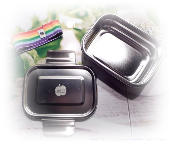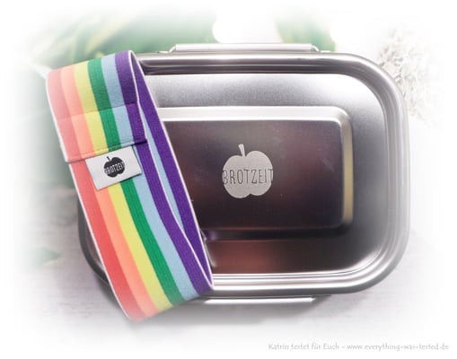 Die Brotzeit Lunchbox ist eine Brotdose mit farbigem Gummiband aus reinem 18/10er Edelstahl, somit 100 % BPA frei und bleifrei.