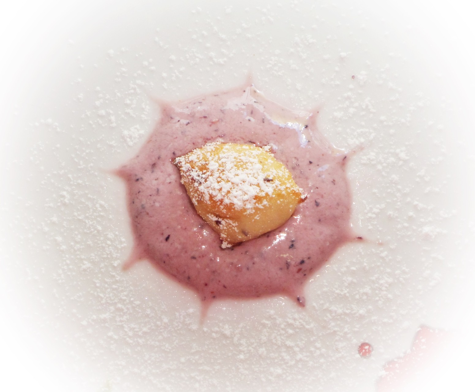 Natürlich gehört eine leckere Soße dazu ! Ihr könnt Vanillesoße machen oder wie ich - Himbeere mit Heidelbeere und etwas Milch (Ersatzmilch).