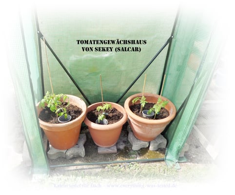 In diesem Jahr wollte ich die Tomaten einfach mal im Topf anbauen, denn ich war neugierig, ob sie da genauso gut wachsen, als wenn sie in der Erde sind. Dazu benötigte ich aber ein Gewächshaus, damit die Tomaten etwas geschützter sind. Salcar unterstützte liebenswürdigerweise mein Projekt mit einem Tomatengewächshaus.