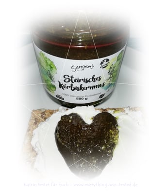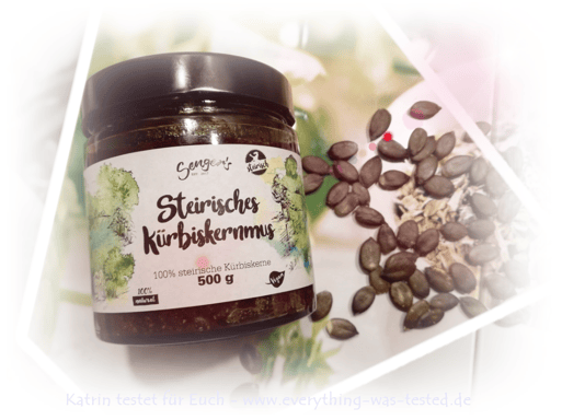 - es wurden aus 100 Prozent natürlichen steirischen Kürbiskernen ohne Zucker und Zusätze (keine Aromen, Palmöl oder Konservierungsmittel) hergestellt