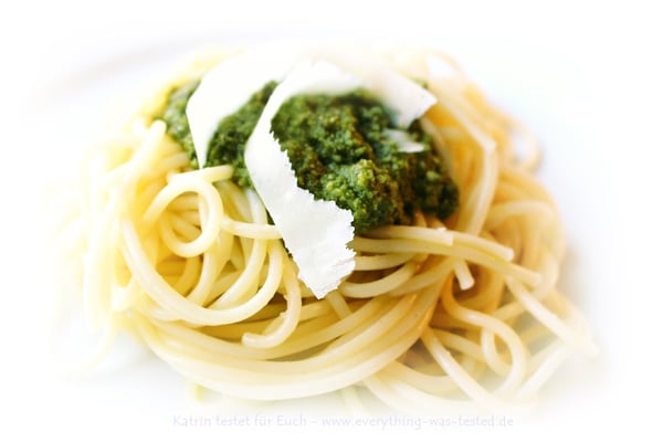 Das Pesto schmeckt sehr gut, aber da es leider Knoblauch enthielt, konnte ich selbst nur wenig davon probieren und meine Familie musste es ausgiebig testen. Geschmack und Konsistenz kamen sehr gut an und daher geben wir alle - 4,5 von 5 Sterne :)