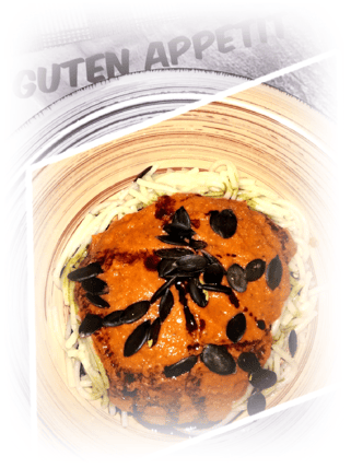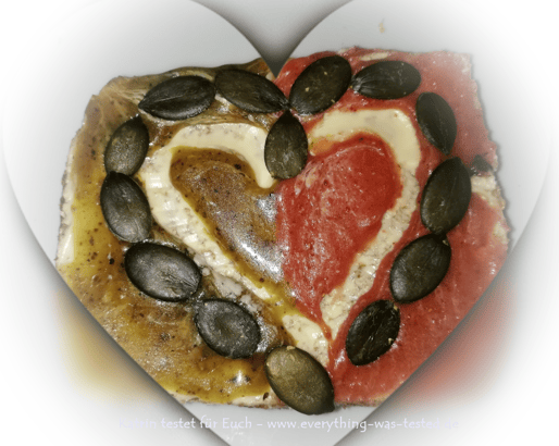 - Pesto (aus Kürbiskernen, Liebstöckel, Sonnenblumenkernen, Weizenkeimen)