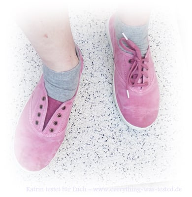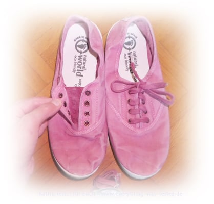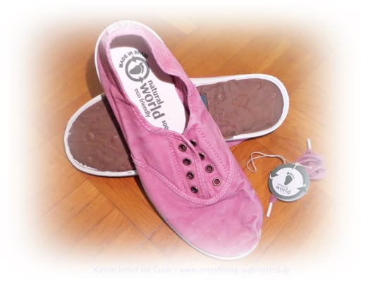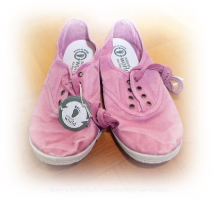 Die rosafarbenen schicken Sneakers sind wirklich angenehm leicht und beim Reinschlüpfen sitzt der Fuß bequem im Schuh. Sie wurden von Natural World Eco in Spanien hergestellt.