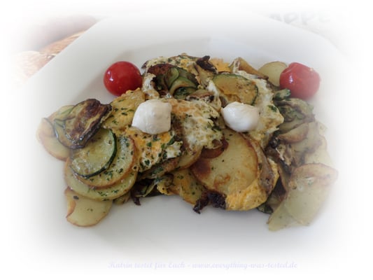 Zucchini Kartoffel Pfanne - Alles gut mit dem Santokumesser in Scheiben geschnitten - Guten Appetit !