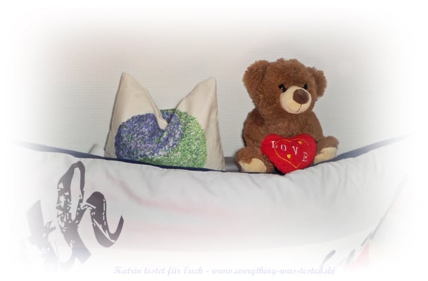 Am besten kam das Lavendelkissen, wenn ich mich direkt mit dem Kopf daraufgelegt habe, zum Einsatz. Also legte oder lehnte ich mich jeden Abend ans/aufs Kissen und genoss das angenehme Aroma der Lavendel.