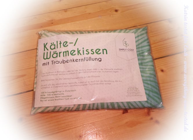 Das Kissen riecht beim Auspacken unauffällig und enthält 350 g gewaschene Traubenkerne. Das Design mit einem grünen Stern gefiel mir beim Traubenkernkissen am besten - ich fand, dass hat was und passt zum Inhalt.