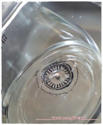 Hingegen auf der Kaffeekanne habe ich es nur für kurze Zeit aufgesprüht und dann sofort wieder abgespült. Dabei war ich etwas verblüfft, weil der Kalk sofort streifenfrei beseitigt wurde. Seitdem läuft die Kaffeekanne nicht mehr so leicht an, also nicht mehr so schnell eine Kalkablagerung.