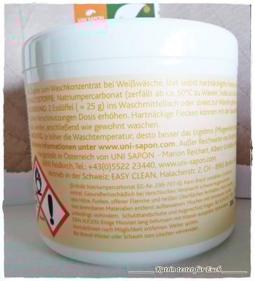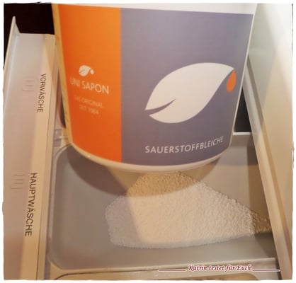 Die Sauerstoffbleiche besteht aus einem feinen weißen körnigen geruchlosen Pulver und getestet wurde er natürlich beim Waschen.