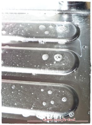 Da wir sehr hartes Wasser haben, sammelt sich natürlich sehr schnell der Kalk überall an und ich brauchte also nicht lange warten.