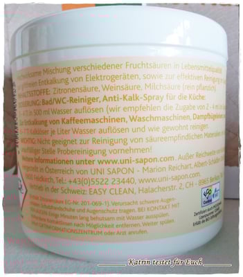 Inhaltsstoffe: 100% Fruchtsäuren in Lebensmittelqualität (Zitronensäure, Weinsäure, Milchsäure (rein pflanzlich)