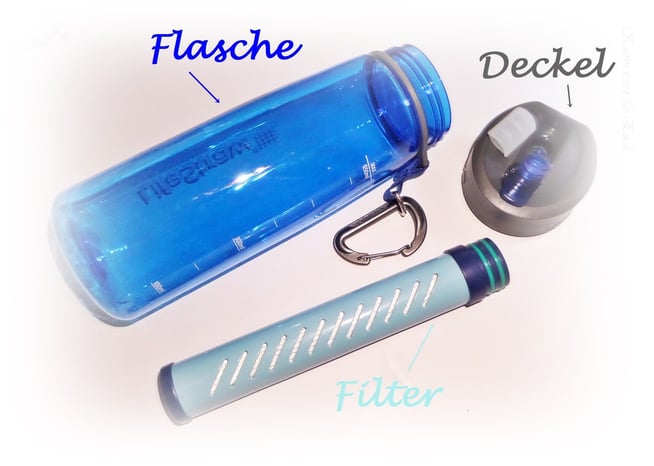 Die Wasserfilterflasche besteht aus drei Teilen :