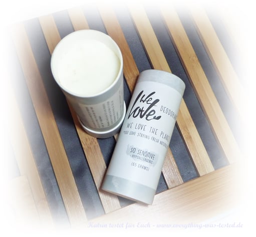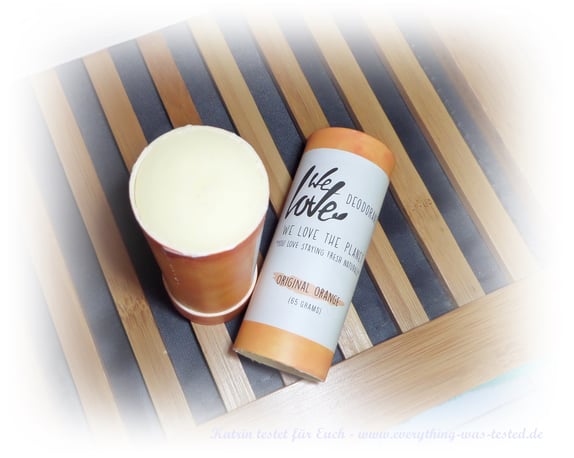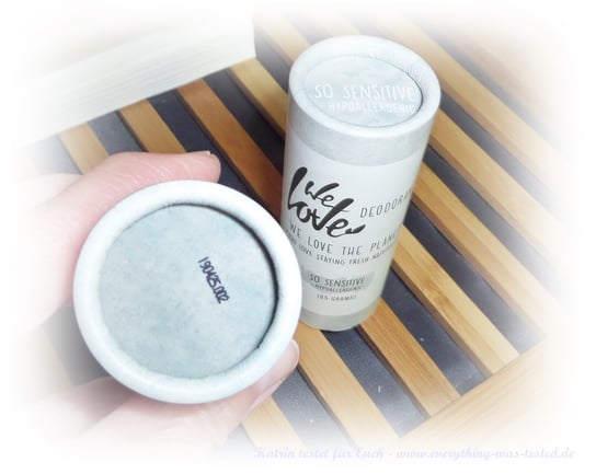 Die Deo-Sticks von We love the planet haben eine umweltfreundliche plastikfreie Umverpackung aus Pappe und kommen leicht zur Anwendung. Die Stick sind sehr groß (65 Gramm), aber dennoch sind sie gut zu Händeln und passen in die Handtasche.