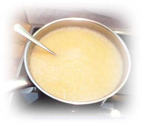 - Alles gut durchmixen und die Zitronenmasse in einen Topf gießen.