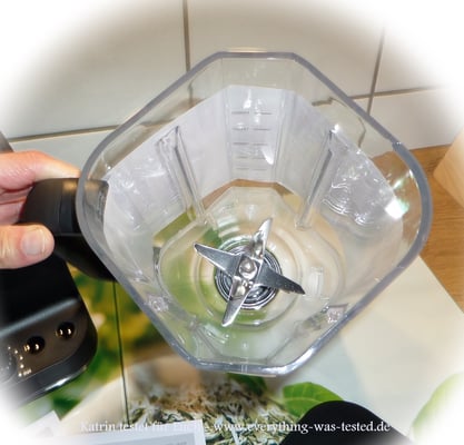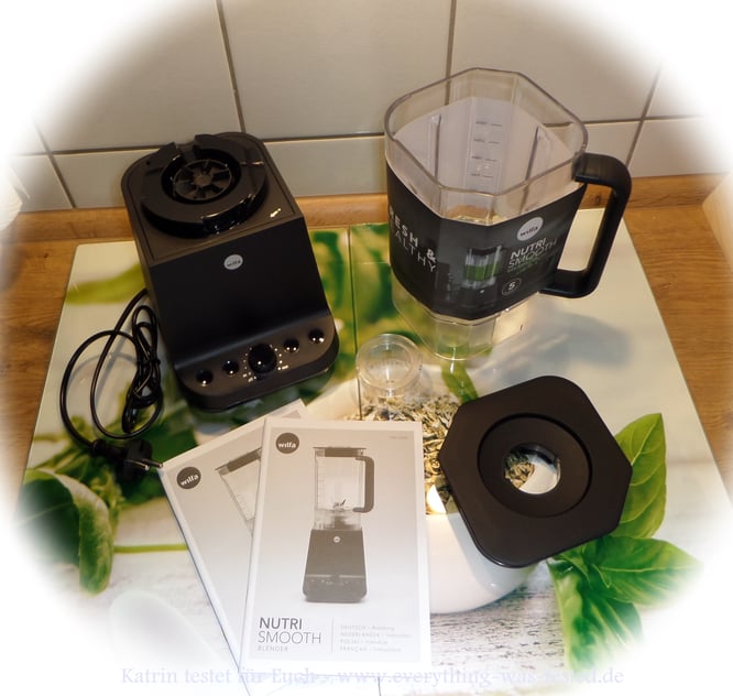 Der Hochleistungsmixer Wilfa Nutri Smooth Blender wirkt beim Auspacken auf den ersten Blick sehr robust. Der Mixbehälter mit seinem beschichteten Griff, liegt rutschfest in der Hand und der Behälter rastet nach etwas Übung gut in die Vorrichtung ein. Das Messer ist so geformt, dass es die Flüssigkeiten/Lebensmittel ideal im Mixbehälter aufwirbelt und zugleich in kurzer Zeit zerkleinert - am Wichtigsten sind beim Mixer gute Messer, sollten die stumpf oder unpassend angeordnet sein, dann bringt der Mixer kein gutes Ergebnis !