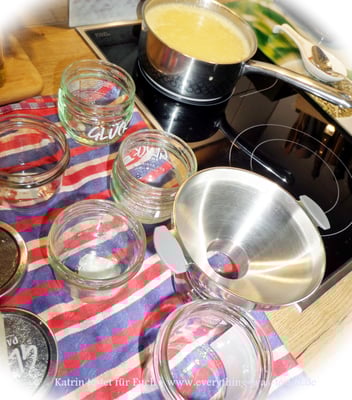 - Das Geliermittel unterrühren und das Ganze aufkochen - ca. 3 min. weiter köcheln lassen