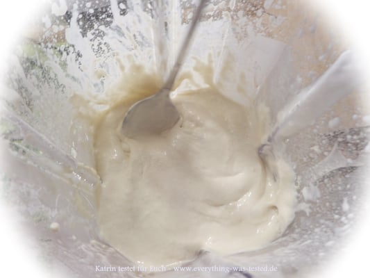 - Joghurt und Backpulver zuerst in den Mixer und kurz Intervalltaste drücken
