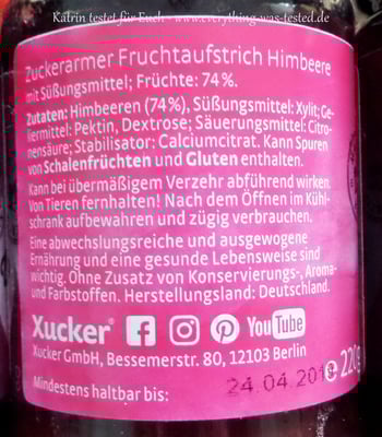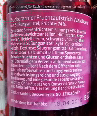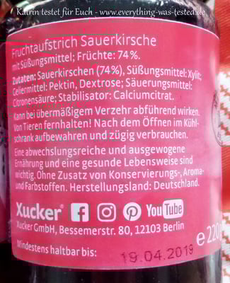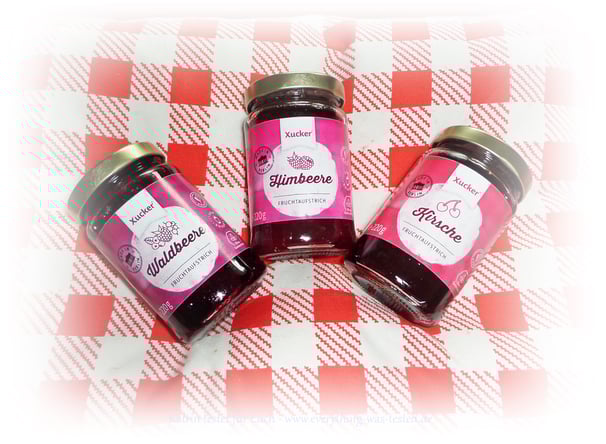 Insgesamt gibt es sieben Sorten Fruchtaufstrich von Xucker (Apfel-Zimt/Zwetschke/Waldbeere/Kische/Himbeere/Erdbeere/Aprikose) - da ist die Auswahl richtig groß und jeder findet da bestimmt seinen Lieblingsfruchtaufstrich. Hergestellt sind die Fruchtaufstriche ohne Gentechnik und ohne Zusatz von Konservierungs-, sowie Aroma- und Farbstoffen - vegan. Jedes Glas enthält 220 g und kostet UVP 3,99 Euro.