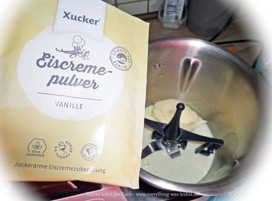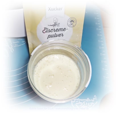 Das Beste an der Zubereitung ist, die Eiscreme kann auch ohne Eismaschine zubereitet werden - praktisch, denn wir haben keine Maschine. Du musst einfach nur Milch mit dem Pulver cremig aufgeschlagen und dann in den Gefrierschrank geben, anschließend schon nach ein paar Stunden erhälst Du ein cremiges Vanille-Eis, welches Du nach Lust und Laune auch noch mit Früchten oder anderen leckeren Sachen verbessern kannst.